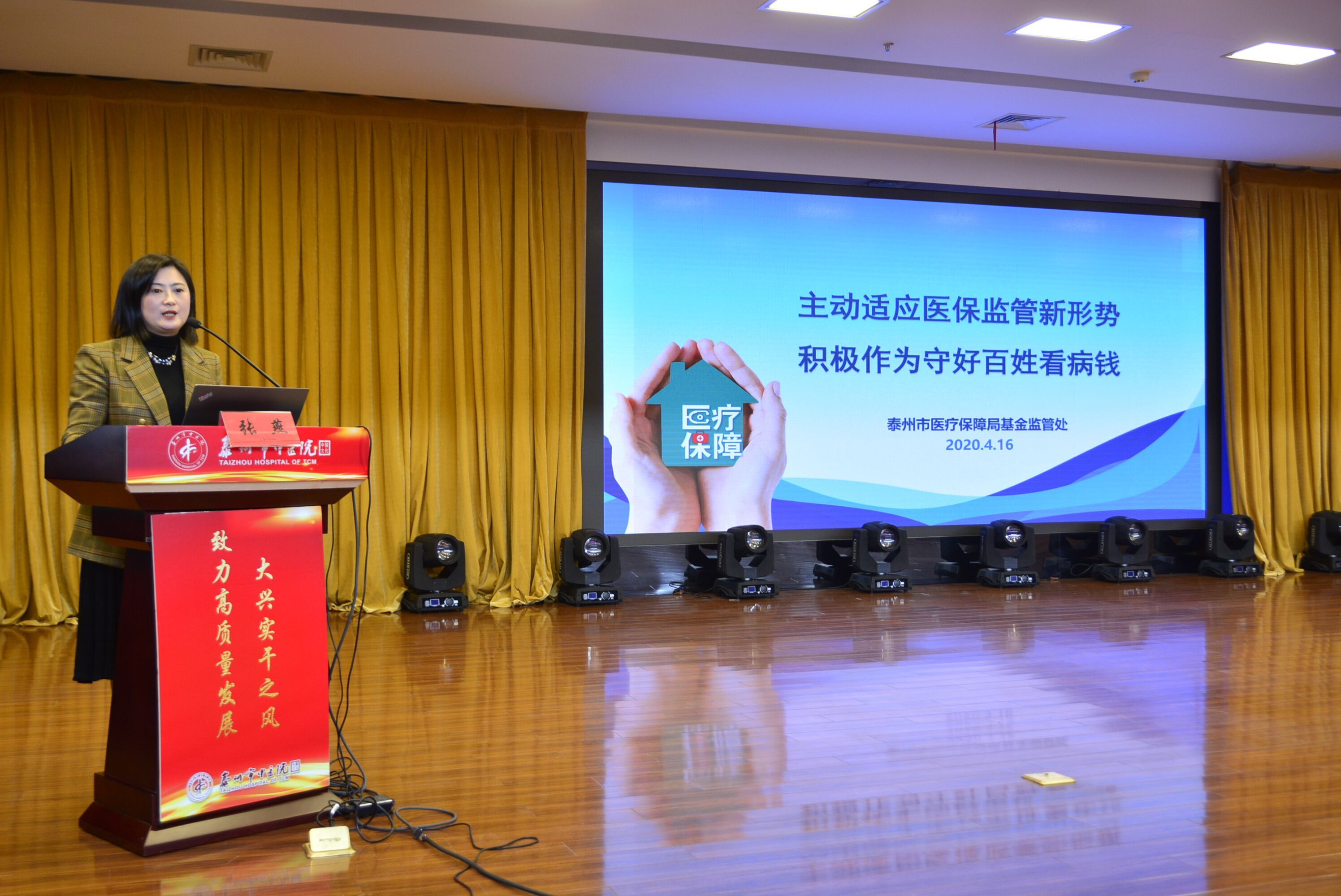 4月16日下午,泰州市醫(yī)療保障局在我院會議中心與我院聯(lián)合開展“維護(hù)醫(yī)保基金安全”專題講座培訓(xùn)與“醫(yī)保醫(yī)師、醫(yī)保護(hù)士”自律承諾活動。市醫(yī)保局基金監(jiān)管處處長張燕、錢海林,泰州市中醫(yī)院副院長殷勇,醫(yī)保物價(jià)處處長曹新建,醫(yī)院各臨床科室主任、護(hù)士長、醫(yī)保聯(lián)絡(luò)員及部分職能處室工作人員參加了本次活動。