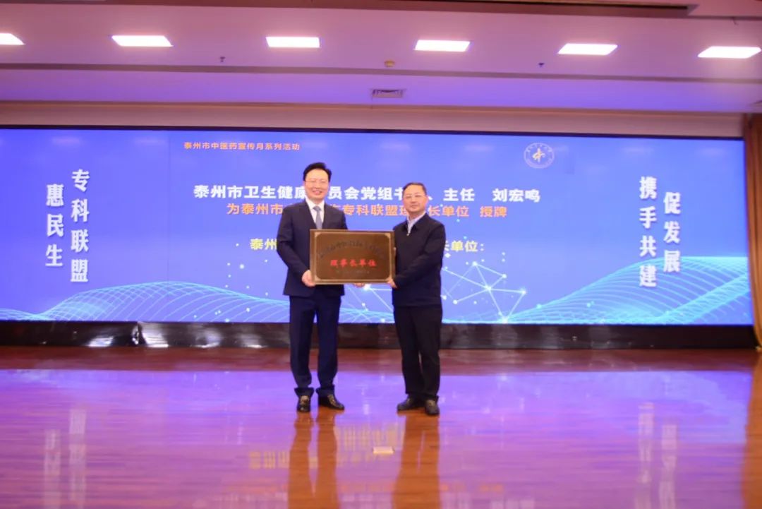 泰州市衛(wèi)健委主任劉宏鳴為聯(lián)盟理事長單位泰州市中醫(yī)院授牌