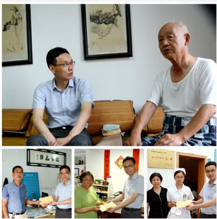 7月1日中午,受醫(yī)院黨委書記王華委托,黨委副書記孫曉軍、黨辦主任許粉年等一行深入老黨員家中、在職黨員工作崗位上,開展“七一”期間黨員走訪慰問活動,感謝他們?yōu)獒t(yī)院所做出的貢獻(xiàn),聽取了他們的建議意見,了解他們的思想,并送上黨組織的關(guān)懷。