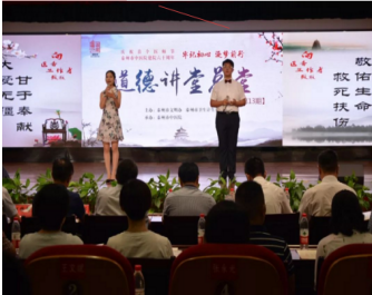 道德總堂衛(wèi)計(jì)委專場(chǎng)活動(dòng)共分為看短片、作自省、唱歌曲、音詩畫、誦經(jīng)典、講故事、談感悟、送吉祥8個(gè)環(huán)節(jié)。今年8月19日為首個(gè)“中國醫(yī)師節(jié)”,本期道德講堂總堂以“牢記初心,逐夢(mèng)前行”為活動(dòng)主題。通過讓醫(yī)護(hù)人員成為思想道德建設(shè)主體,“身邊人講身邊事、身邊人講自己事、身邊事教身邊人”的一種形式,從而來推動(dòng)新時(shí)期的醫(yī)德醫(yī)風(fēng),不斷提高醫(yī)護(hù)人員的思想道德修養(yǎng)和文明素質(zhì),讓人民群眾更加滿意!