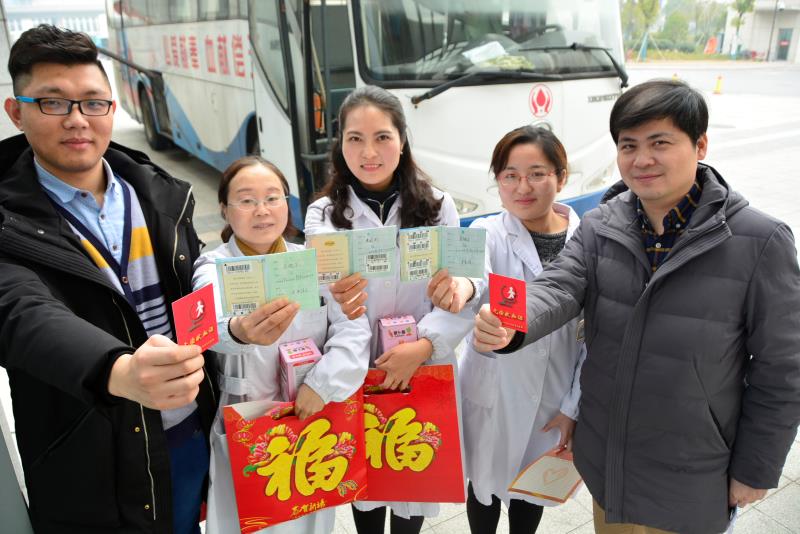 為組織好本次無償獻血活動,黨委辦公室通過各種方式向全院醫(yī)護人員發(fā)布通知,接到通知后,醫(yī)務(wù)人員紛紛自發(fā)的參與到活動中來。當(dāng)日一大早,泰州市中心血站的采血車開進了醫(yī)院門診一樓東側(cè),穿著白衣、佩著黨徽的醫(yī)護工作者撩起袖子奉獻了自己的愛心。在活動現(xiàn)場,報名獻血的醫(yī)務(wù)人員早早來到獻血活動點,完成登記填表、化驗采血等準(zhǔn)備工作后,身體檢查合格的白衣天使們爭先恐后紛紛卷起衣袖,踏上獻血車,捐獻出自己的一份愛心。支部書記帶頭獻,黨員干部踴躍獻,科室骨干積極獻,短短4個小時就有70多人參與無償獻血,(全血)采血量達20000毫升。在當(dāng)天的獻血者隊伍中,有協(xié)調(diào)好工作后前來獻血的行政工作人員,有剛剛值完夜班還來不及休息的護士,甚至有剛剛獻完血就要上手術(shù)臺繼續(xù)工作的醫(yī)生,大家都不約而同加入到自愿無償獻血的隊伍中。 獻血現(xiàn)場,溫暖洋溢,志愿者積極參與,為獻血人員服務(wù),早早就準(zhǔn)備好具有特殊意義的紀(jì)念品,細(xì)心照顧好這些勇于奉獻的可愛的人們。獻血后稍事休息,很多同志都直接回到了工作崗位上。
