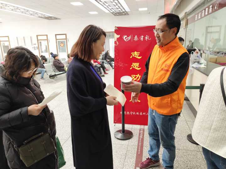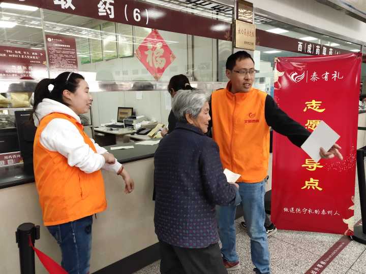 4月6日,泰州市中醫(yī)院在門診服務(wù)大廳開展“文明禮讓 有序排隊(duì)”泰有禮主題活動(dòng)。由黨辦牽頭,門診部、藥學(xué)辦等部門參與,活動(dòng)采用“排隊(duì)送禮”的獎(jiǎng)勵(lì)手段,根據(jù)患者所需發(fā)放小禮品100余份,醫(yī)院宣傳畫冊(cè)100余份,志愿者、診導(dǎo)醫(yī)臺(tái)護(hù)士、部分黨員參加了活動(dòng)。
