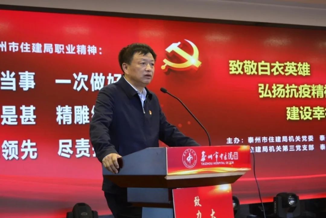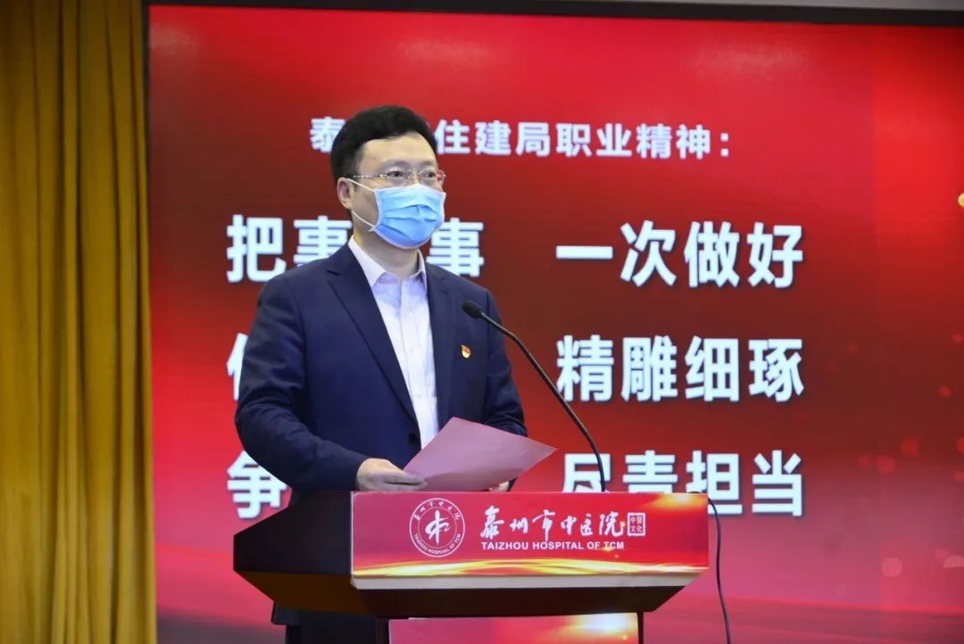 為進一步加強規(guī)范化建設(shè),提升支部黨建工作水平,激勵廣大黨員干部積極履職擔(dān)當(dāng)。4月30日上午,泰州市住建局機關(guān)黨委聯(lián)合泰州市中醫(yī)院黨委開展“致敬白衣英雄 弘揚抗疫精神 建設(shè)幸福城市”主題黨日活動。市住建局黨組書記、局長高衛(wèi)東及班子成員;市中醫(yī)院黨委書記、院長王華及班子成員;市住建局和市中醫(yī)院黨員代表參加了此次活動。