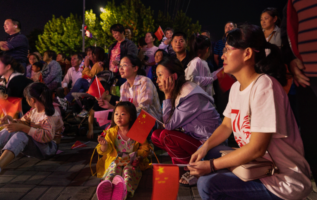 現(xiàn)場穿插的中秋詩詞、空竹一起抖起來、黨建知識趣味問答,我和我的祖國大合唱,引得臺下觀眾紛紛上臺,更是將晚會推向了高潮。