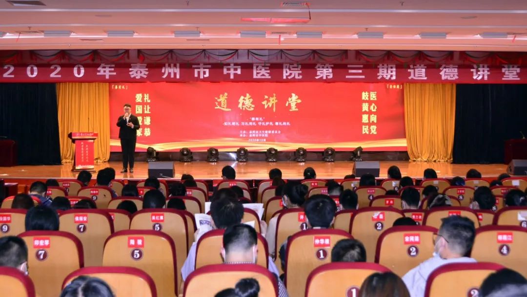 為積極響我市“泰有禮”全民主題實踐活動,進一步傳承中華美德,凝聚道德力量,發(fā)揚講“禮”重“儀”是中華民族世代相傳的優(yōu)良傳統(tǒng)。10月12日下午,泰州市中醫(yī)院舉辦2020年第三期道德講堂活動,此次活動主題為“泰有禮”。醫(yī)院院領導、黨員、團員青年、入黨積極分子及新入職員工共計200余人參加了此次活動。