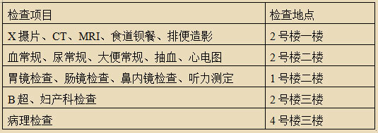 1、門診檢查地點(diǎn)一覽表