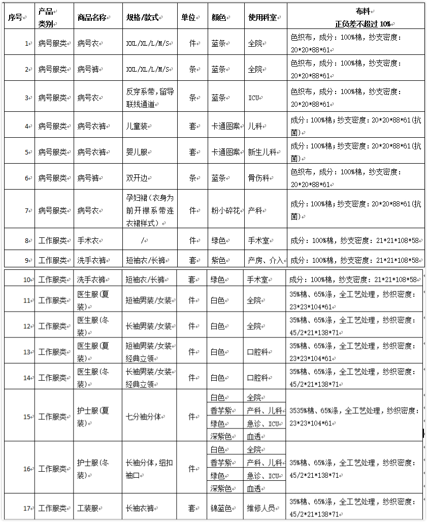 一、項(xiàng)目名稱:泰州市中醫(yī)院病人服、工作服采購