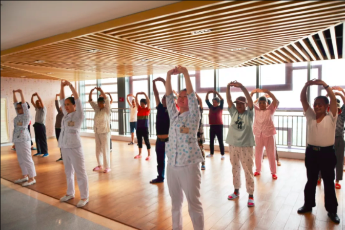 每天下午4點(diǎn)護(hù)士們便帶領(lǐng)住院患者進(jìn)行八段錦、手指操的運(yùn)動(dòng)。