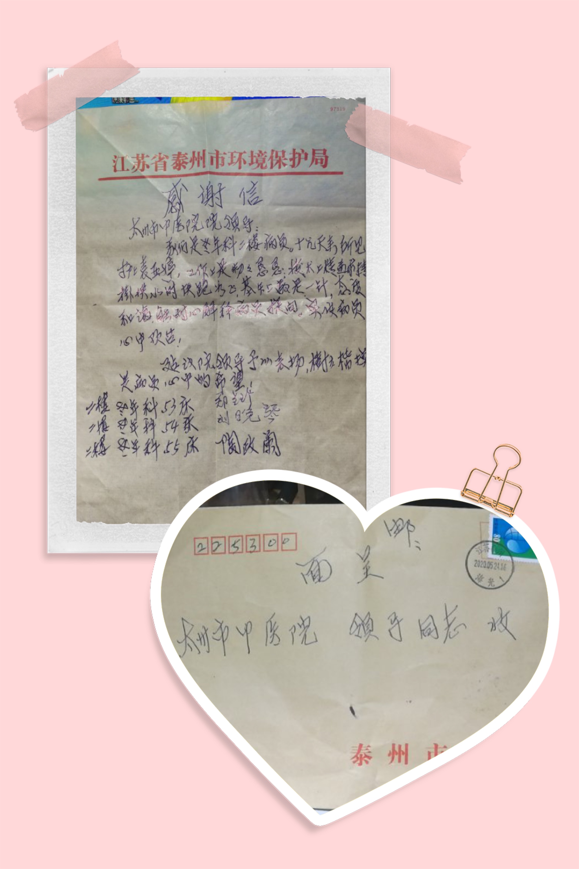 5月26日,泰州市中醫(yī)院護(hù)理部又收到患者一封特別感謝信,患者家屬為了表達(dá)感謝特地將書寫的感謝信和錦旗送到了護(hù)理部,這已經(jīng)是本周收到的第三封感謝信,信中分別感謝了泰州市中醫(yī)院神經(jīng)外科護(hù)士劉月、老年科護(hù)士袁亞婷和二十八病區(qū)護(hù)理組。