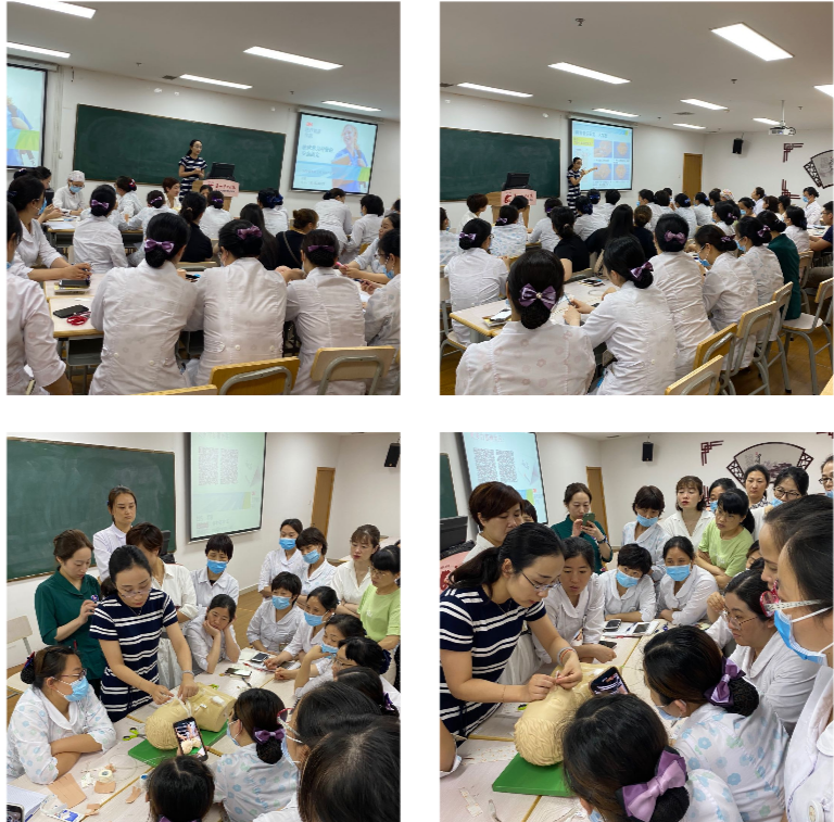在講解完相關(guān)知識(shí)后,參會(huì)人員分成4組進(jìn)行現(xiàn)場(chǎng)練習(xí),老師進(jìn)行現(xiàn)場(chǎng)指導(dǎo)。大家在認(rèn)真練習(xí)的同時(shí),結(jié)合臨床經(jīng)驗(yàn)提出了工作中常見的困惑,并相互交流,相互促進(jìn),更激發(fā)了大家的學(xué)習(xí)熱情,現(xiàn)場(chǎng)氣氛輕松活躍,學(xué)習(xí)氛圍濃厚,提升了團(tuán)隊(duì)協(xié)作能力。