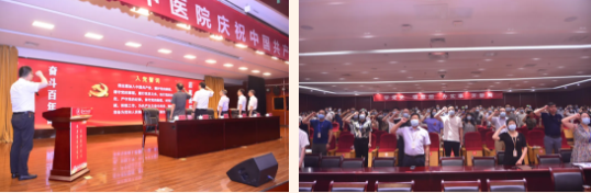 “我志愿加入中國(guó)共產(chǎn)黨……”在副院長(zhǎng)殷勇的帶領(lǐng)下,全場(chǎng)黨員重溫入黨誓詞。面對(duì)鮮紅的黨旗,大家舉起右拳,莊嚴(yán)宣誓,錚錚誓言響徹會(huì)場(chǎng),表達(dá)了為共產(chǎn)主義事業(yè)奮斗終身的堅(jiān)定信念。