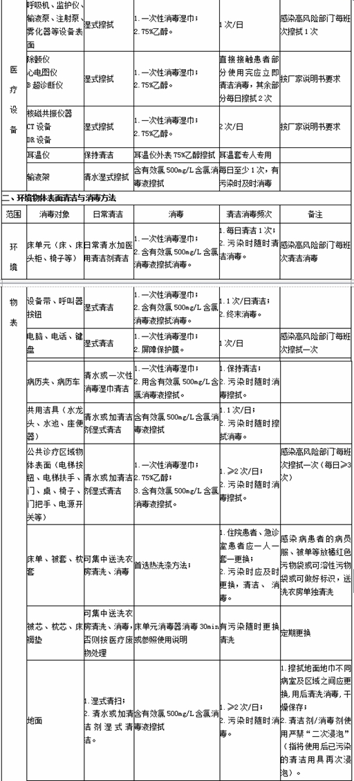 ?4.接診、收治新冠肺炎疑似患者或確診患者的診療區(qū)域,其環(huán)境物體表面的清潔消毒處理應合理增加消毒劑濃度和消毒頻次,如使用含氯消毒劑,消毒劑濃度應調整為1000mg/L。