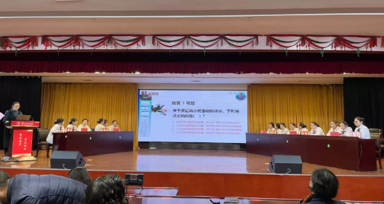 搶答題環(huán)節(jié)既拼“手速”,也拼臨場反應(yīng)與知識儲備。選手們?nèi)褙炞?,爭奪答題權(quán),經(jīng)過數(shù)個回合的比拼,各隊之間的比分逐漸拉開差距,將現(xiàn)場氣氛推向高潮。各隊踴躍搶答、你爭我趕、毫不示弱,現(xiàn)場氣氛活潑熱烈、扣人心弦,充分展示了泰州市中醫(yī)院護理人員扎實的理論基礎(chǔ)和奮勇爭先、積極向上的精神風(fēng)貌。