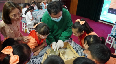 活動(dòng)中,我院眼科副主任醫(yī)師宋昱結(jié)合2022年6月6日愛眼日主題“關(guān)注普遍眼健康,共筑‘睛’彩大健康”,講解了青少年保護(hù)視力健康的重要,并對(duì)眼部周圍的穴位和功效進(jìn)行介紹。同時(shí)結(jié)合簡單易學(xué)的眼保健操,帶領(lǐng)學(xué)生們一起按揉風(fēng)池穴、太陽穴、睛明穴、四白穴等穴位,讓學(xué)生在輕松愉快的課堂氛圍中學(xué)會(huì)了運(yùn)用中醫(yī)的知識(shí)保護(hù)眼睛,進(jìn)一步了解掌握中醫(yī)藥文化以及中醫(yī)藥日常護(hù)理小妙招。