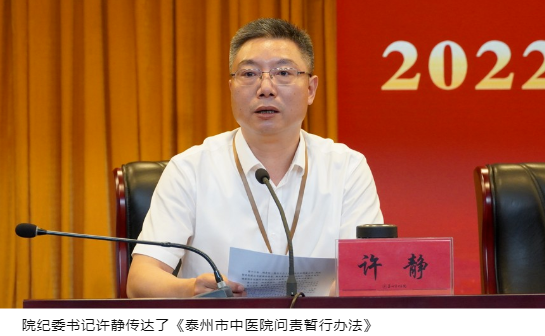 為認(rèn)真貫徹落實(shí)全面從嚴(yán)治黨的要求,扎實(shí)推進(jìn)黨風(fēng)廉政建設(shè)工作,進(jìn)一步增強(qiáng)全體黨員干部職工黨風(fēng)廉政建設(shè)的政治意識(shí)、責(zé)任意識(shí)和大局意識(shí),營(yíng)造風(fēng)清氣正的醫(yī)院環(huán)境,7月27日下午,泰州市中醫(yī)院召開2022年黨風(fēng)廉政建設(shè)大會(huì)。院領(lǐng)導(dǎo)班子全體成員、各部門、科室負(fù)責(zé)人、護(hù)士長(zhǎng)等參會(huì),泰州市紀(jì)委監(jiān)委第十四派駐紀(jì)檢監(jiān)察組組長(zhǎng)顧宏偉出席會(huì)議并講話。