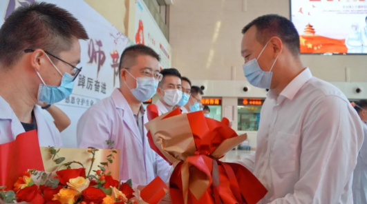 活動開始前,泰州市人民政府副市長徐文進帶隊來院慰問醫(yī)務工作者。徐文進向醫(yī)務人員代表送上鮮花,祝大家節(jié)日快樂,并通過他們向全院醫(yī)務工作者致以節(jié)日的問候和崇高的敬意,希望大家慎終如始,再接再厲,在注重自我防護的同時,為打贏疫情防控阻擊戰(zhàn)繼續(xù)戰(zhàn)斗。泰州市政府副秘書長黃衛(wèi)平,市衛(wèi)健委黨組書記、主任江義舟,副主任邵驊,我院黨委書記韓金虎,院長浦政軼及院領導班子成員陪同慰問。