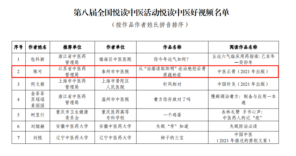 由中國中醫(yī)藥出版社、中國中醫(yī)科學(xué)院、中華中醫(yī)藥學(xué)會(huì)、《中國中醫(yī)藥報(bào)》社等單位共同主辦的第八屆全國悅讀中醫(yī)活動(dòng)結(jié)果揭曉。我院榮獲“第八屆全國悅讀中醫(yī)活動(dòng)優(yōu)秀成員單位”稱號,我院視頻作品《從“治痿讀取陽明”論治絕經(jīng)后骨質(zhì)疏松癥》獲“第八屆全國悅讀中醫(yī)活動(dòng)悅讀中醫(yī)好視頻”。