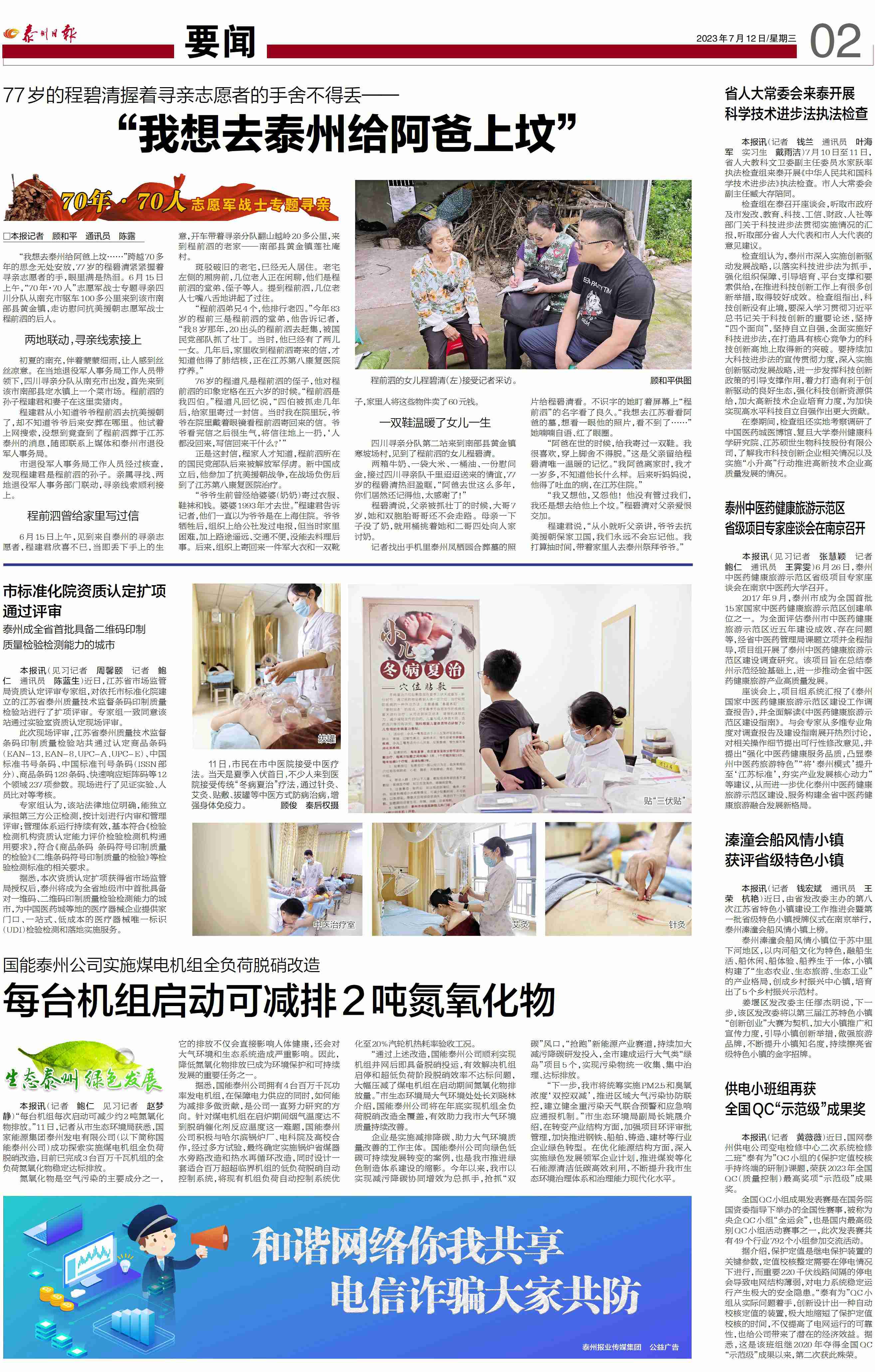 【泰州日報7月12日】市民在市中醫(yī)院接受中醫(yī)療法
