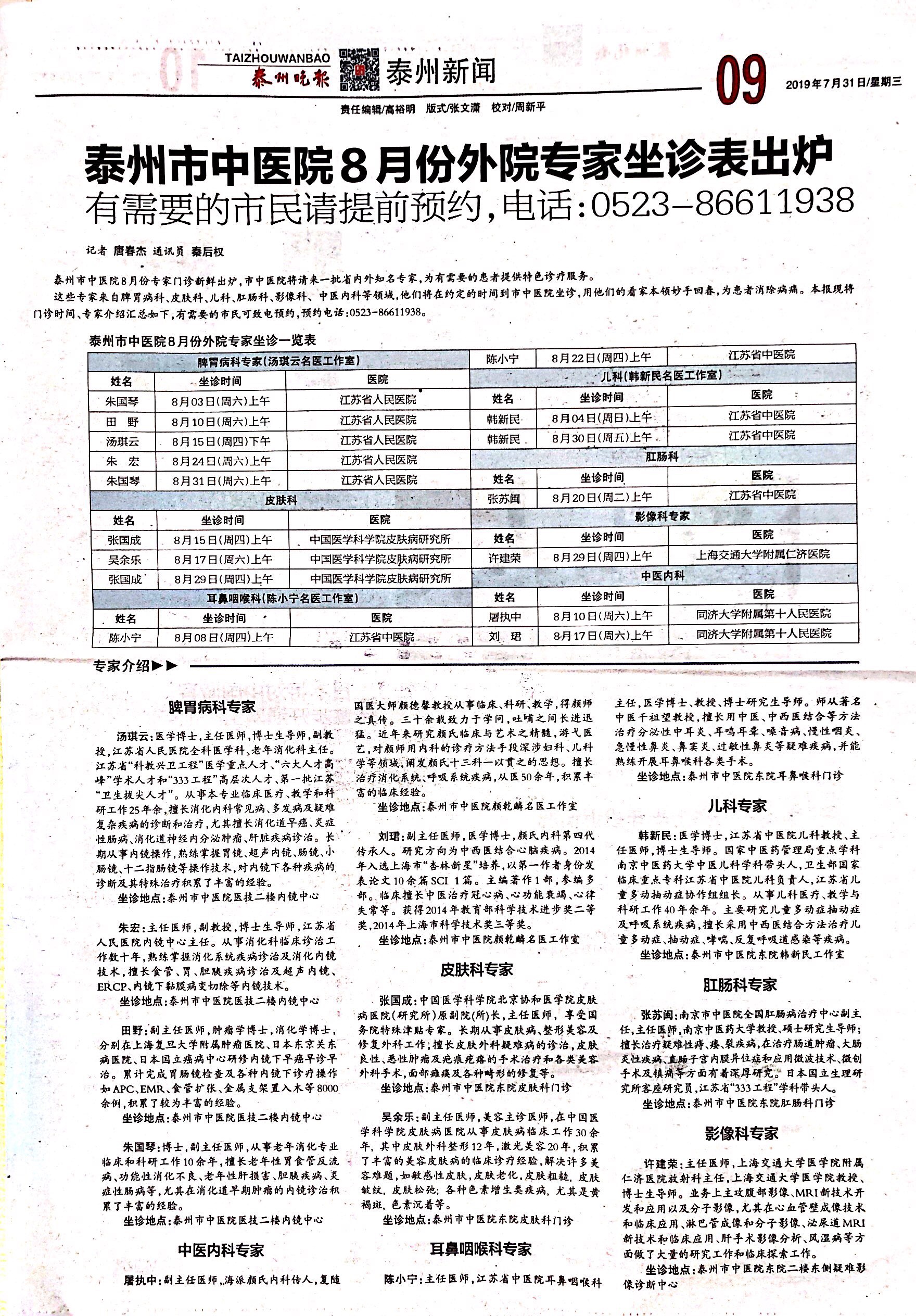 來源:泰州市中醫(yī)院 作者:編輯 時(shí)間:2019-07-31 15:40:00