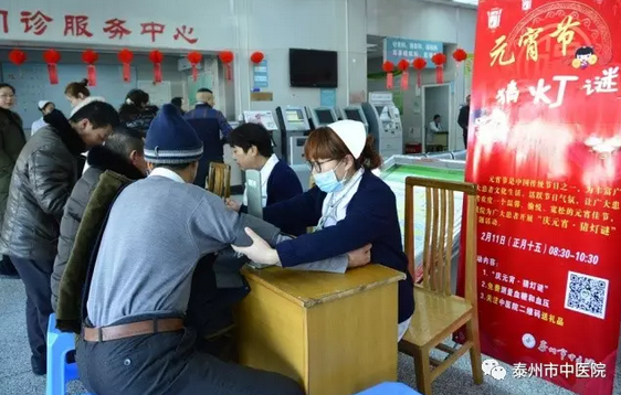 為了讓市民體驗(yàn)傳統(tǒng)文化和民俗,2月11日元宵節(jié),泰州市中醫(yī)院門診部特別推出了“元宵佳節(jié)猜燈謎”活動(dòng)。大廳內(nèi)布置上百份燈謎,供市民猜謎,猜謎內(nèi)容都是中醫(yī)藥、健康知識(shí),猜中者都有禮品相送。