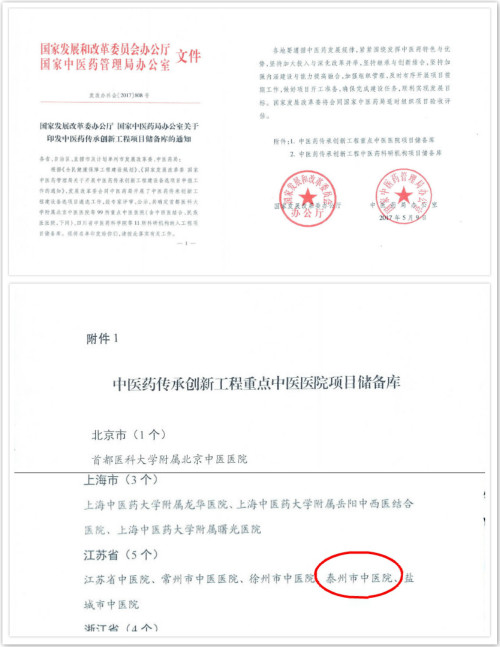 我省除泰州市中醫(yī)院外,還有省中醫(yī)院、常州市中醫(yī)醫(yī)院、徐州市中醫(yī)院,鹽城市中醫(yī)院,共5家中醫(yī)醫(yī)院入選。
