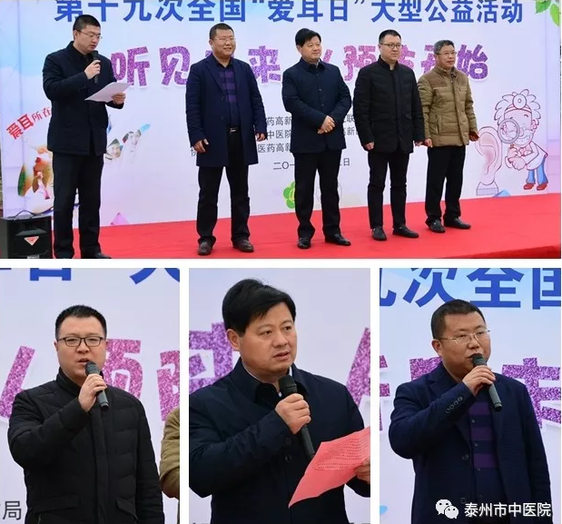 3月2日上午,“愛(ài)耳日”公益活動(dòng)開(kāi)幕儀式在泰州市明珠廣場(chǎng)舉行。泰州市中醫(yī)院副院長(zhǎng)殷勇,泰州市醫(yī)藥高新區(qū)民政局副局長(zhǎng)陳奎芝,泰州醫(yī)藥高新區(qū)愛(ài)心公益聯(lián)盟理事長(zhǎng)盧大成、中醫(yī)院耳鼻喉科主任於榮鑄參加了開(kāi)幕儀式。殷勇副院長(zhǎng),陳奎芝副局長(zhǎng),於榮鑄主任分別致辭。開(kāi)幕式后,泰州市中醫(yī)院耳鼻喉科專家及志愿者為幼兒園的小朋友進(jìn)行了聽(tīng)力測(cè)試,向他們普及預(yù)防耳病的要點(diǎn)。