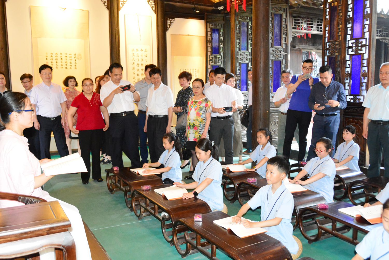 在泰和堂內(nèi)的稻河中醫(yī)大講堂,一群正在誦讀國(guó)學(xué)經(jīng)典的小朋友,吸引了代表團(tuán)駐足觀看