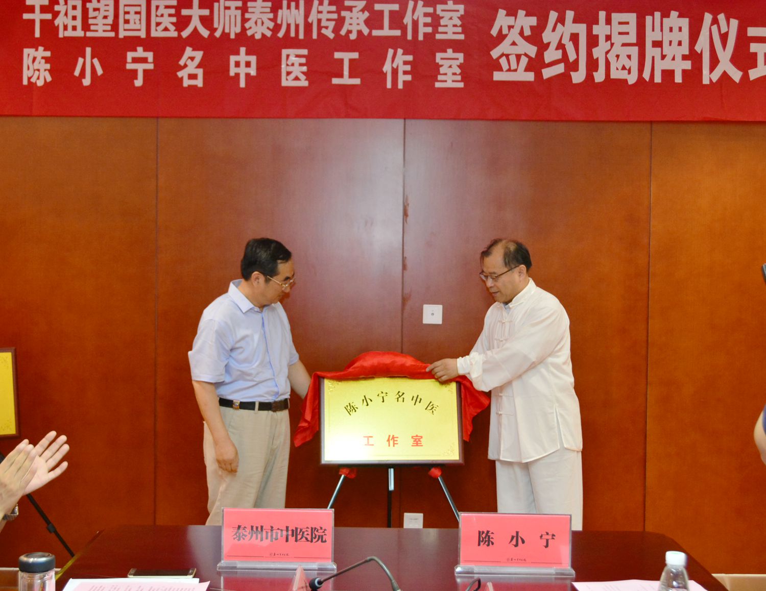 泰州市衛(wèi)計(jì)委副調(diào)研員王彬先生與陳小寧教授共同為“陳小寧名中醫(yī)泰州工作室”揭牌