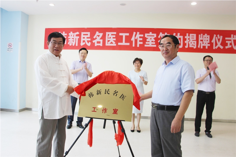 韓新民教授與王彬副調研員共同為“韓新民名醫(yī)工作室”揭牌