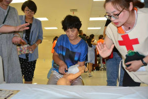 醫(yī)護(hù)志愿者人員認(rèn)真講解,市民學(xué)習(xí)熱情高漲,練習(xí)心肺復(fù)蘇時(shí),嚴(yán)格要求自己,直到達(dá)到模擬人的亮燈要求才肯松手。