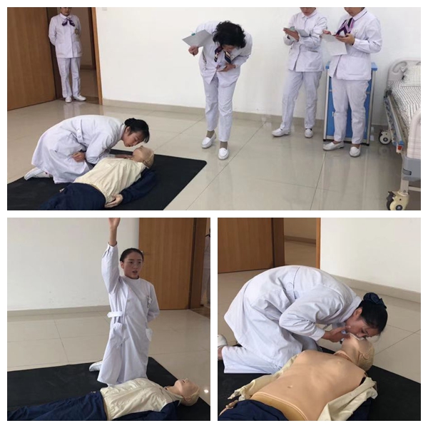 各院校實(shí)習(xí)同學(xué)競(jìng)相參與,最后推選14名同學(xué)參賽,其他同學(xué)全程現(xiàn)場(chǎng)觀摩。競(jìng)賽分為耳穴埋籽組和心肺復(fù)蘇組,孫四美、劉萍、徐敏護(hù)士長(zhǎng)擔(dān)任心肺復(fù)蘇組評(píng)委,周麗娟、劉巧鳳、蔣富華護(hù)士長(zhǎng)擔(dān)任耳穴埋籽組評(píng)委,護(hù)理部羅芹主任、沈曉紅主任親臨比賽現(xiàn)場(chǎng)予以指導(dǎo)。