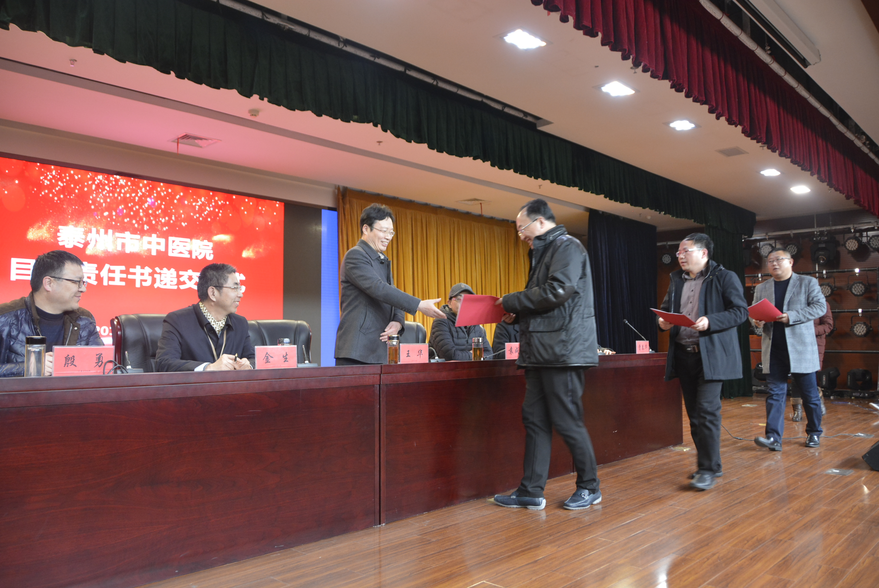 會議開始后,首先由各相關(guān)職能科室負責人對2018年的各項效率效益指標考核情況進行通報。隨后,各臨床醫(yī)技、職能科室負責人遞交2018年度綜合目標責任書。各科室負責人表示將以時不我待,只爭朝夕的精神狀態(tài),立足崗位本職,做一名負重奮進,敢為人先的合格中醫(yī)醫(yī)院人和勇于擔當?shù)闹袑庸歉桑瑸橹嗅t(yī)院的發(fā)展和中醫(yī)藥事業(yè)的振興,不忘初心,繼續(xù)前行。