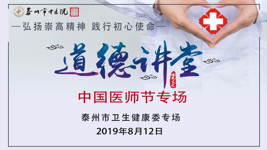 在8月19日第二個(gè)中國(guó)醫(yī)師節(jié)到來(lái)之際,為深入貫徹實(shí)施《公民道德建設(shè)實(shí)施綱要》,扎實(shí)推進(jìn)社會(huì)主義核心價(jià)值體系建設(shè),引導(dǎo)廣大醫(yī)護(hù)人員投身道德實(shí)踐活動(dòng),不斷提升醫(yī)護(hù)人員的思想道德修養(yǎng),8月12日下午,我院成功舉辦了2019年泰州市中醫(yī)院“道德講堂”(衛(wèi)健委專場(chǎng))活動(dòng)。泰州市衛(wèi)健委副主任江義舟,泰州市衛(wèi)健委黨建工作處處長(zhǎng)周榮芳,泰州市衛(wèi)健委團(tuán)委書(shū)記余杏敏,泰州市中醫(yī)院黨委書(shū)記、院長(zhǎng)王華,海陵區(qū)城中街道中山社區(qū)黨委副書(shū)記程羽,海陵區(qū)京泰路街道金東社區(qū)黨支部書(shū)記楊小梅,以及泰州市中醫(yī)院行風(fēng)監(jiān)督員代表、衛(wèi)健系統(tǒng)相關(guān)單位代表、醫(yī)院領(lǐng)導(dǎo)班子成員、全體黨員、團(tuán)員青年、入黨積極分子近300人參加了此次活動(dòng)。