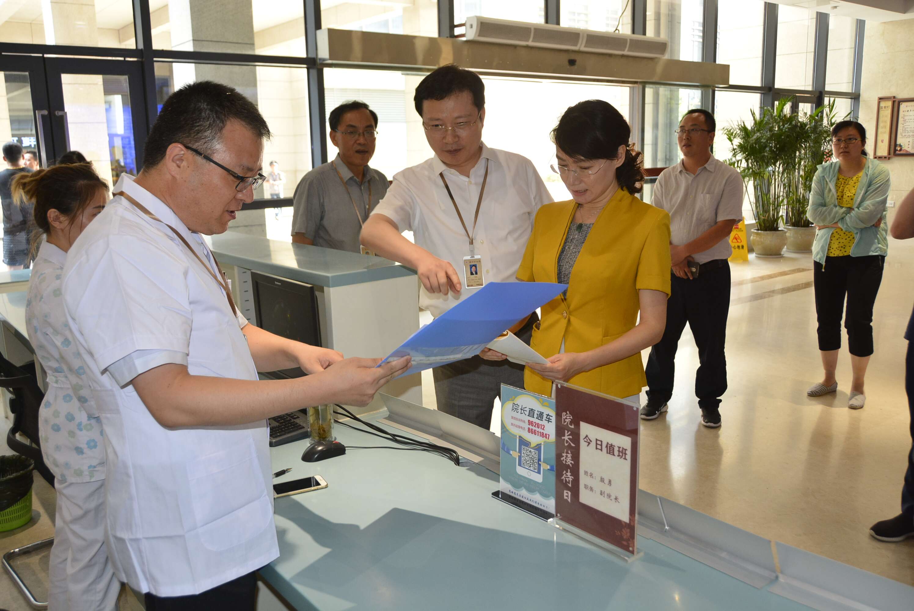 王學(xué)鋒副市長來到我院服務(wù)中心,親切慰問駐點服務(wù)人員,并認(rèn)真查看服務(wù)記錄。今年,泰州市中醫(yī)院縱深推進(jìn)市委市政府、市衛(wèi)健委“改進(jìn)服務(wù),規(guī)范管理”專項行動,開展“杏林暖醫(yī)”主題活動。院領(lǐng)導(dǎo)以身作則,開通“院長直通車”,設(shè)立“院長接待日”,把服務(wù)無止境的標(biāo)準(zhǔn)落實到每一個工作環(huán)節(jié)中,把服務(wù)“沒有最好,只有更好”的沖鋒號又一次吹響。
